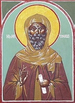 Святий Антоній Великий народився 251 року в єгипетському містечку Комі і походив з багатої християнської сім'ї. У 272 році після смерті батьків він роздав майно бідним і оселився у пустелі поблизу Коми, де жив подвижницьким життям. Згодом він перейшов на гору на східному березі Нілу, де прожив у самотності 20 років. 305 року він заснував монастир у Фаюмі. Сам Антоній не жив у ньому, а лише інколи сходив з гори, щоб дати монахам духовну науку. Він є також одним із засновників кеновійного монашого життя. |