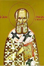 Святий Григорій Богослов народився 329 року в Аріянзі у Малій Азії. Покинувши блискучу кар'єру юриста, він разом зі св. Василієм Великим декілька років життя провів у понтійській пустелі у молитві, пості та роздумах над Святим Письмом. Потім батько Григорія, св. Григорій Старший, який був єпископом Назіянза, висвятив його на священика. Згодом Григорій став єпископом у м. Сазимі. У 375 році він пішов у Ісаврійську Селевкію, де провів п'ять років аскетичного життя. 381 року Григорій став царгородським патріархом. У той час він виголосив свої славні проповіді про Пресвяту Трійцю, за які Халкідонський Собор назвав його Богословом. |