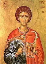 Трифон народився в убогій християнській сім'ї і жив у селі Кампсиді, що в Малій Азії. Він відзначався даром чудотворення. Під час переслідування християн за правління імператора Декія, Трифона і його товариша Респіція було ув'язнено за те, що вони поклонялися Христові, а не поганським божкам. |