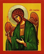 Св. євангелист Іван написав в "Одкровенні", що в небі перед Божим престолом стоять сім ангелів. Святі Отці подають нам їхні імена: Михаїл, Гавриїл, Рафаїл, Уріїл, Сеалтіїл, Єгудіїл та Варахіїл. Про архангела Гавриїла,' ім'я якого означає "Божа мудрість" або "сильний у Бозі", Святе Письмо згадує чотири рази. |