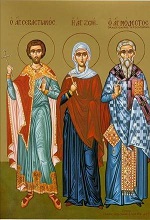 Святий Севастіян походив з Мілана і був римським старшиною. Будучи побожним християнином, відвідував ув'язнених братів у Христі і кріпив їх у святій вірі, відвернувши багатьох з них від відступництва. Удостоївся мученицького вінка 287 року. Поховано його у підземному християнському цвинтарі при вулиці Аппія Антіка в Римі, що його сьогодні називають катакомбами св. Севастіяна. |