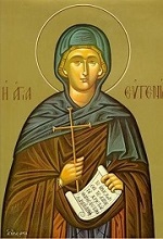 Змилуйся над нами всесильною твоєю молитвою й безмежним прощенням та подай душам нашим твоє милосердя, повіки невичерпне; бо тебе ми, грішні, маємо заступницею перед грядущими нещастями й лихами.