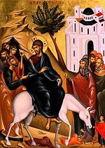 Господи Боже наш, що сидиш на херувимах, Ти підніс силу свою і послав єдинородного Сина Твого, Господа нашого Ісуса Христа, спасти світ хрестом, погребенням і воскресенням Своїм, — нині Його, що прийшов до Єрусалиму на вільні страждання, люди, що сиділи у темряві й тіні смерти, зустріли, взявши знамення воскресення, гілки дерев і галуззя пальмове.
